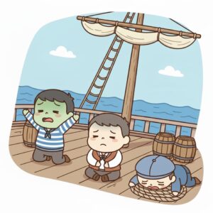 船上生活は過酷で、寝床は狭く衛生環境も劣悪でしたが、乗組員は協力しながら日々を過ごしました。