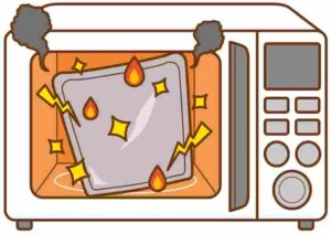 電子レンジは、金属容器やアルミホイルを入れると火花が出て故障や発火の原因になります。