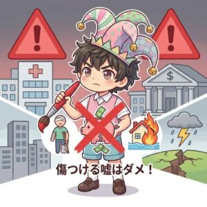 また災害や重大な事件など、人々の命に関わる嘘も社会的なパニックを引き起こす危険性があるため絶対に避けるべきNGな行動です。
