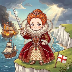 1588年に当時ヨーロッパ最強と恐れられたスペインの無敵艦隊を迎え撃ち、巧みな戦術と荒天の助けもあり見事に打ち破りました。