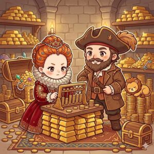 フランシス・ドレークなどの海賊に許可証を与えて私掠船として公認し、敵国スペインの船を襲撃させて莫大な富を奪い取りました。