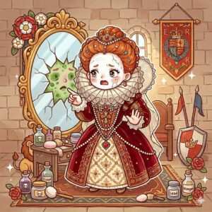 当時流行していた色白の肌を作るために、鉛白と酢を混ぜた有毒な化粧品を愛用し、結果として彼女の地肌はボロボロになりました。