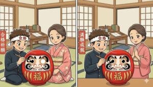 合格祈願のだるまは、願いを込めて左目(向かって右)を入れ、無事に願いが叶った後に右目を入れるのが一般的な作法です。