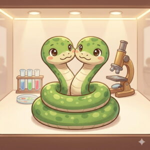 珍しいケースですが、卵の中で細胞分裂が不完全だったために2つの頭を持つ双頭のヘビが突然変異で生まれることがあります。