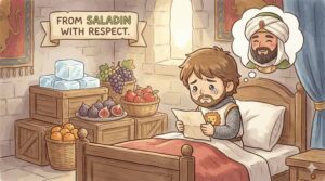 イスラム側の指導者サラディンは、敵であるリチャード1世が病に倒れた際に氷や果物を送るなど、騎士道的な振る舞いを見せました。