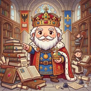 混乱する西ヨーロッパの社会に再び平和をもたらすため、古典文化や学問の復興を目指して様々な学者たちを宮廷へ呼び寄せました。