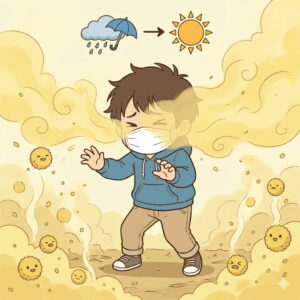 前日に飛散しなかった分と、落ちた花粉が乾燥して再び舞い上がる分が合わさり、飛散量が爆発的に増加してしまうからです。