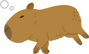 カピバラは野生下で常に天敵を警戒しているため、まとまった深い眠りをとらずに短い昼寝を繰り返します。