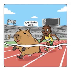カピバラは陸上を走るスピードが意外にも速く、本気を出せば時速50キロほどで駆け抜けることができます。