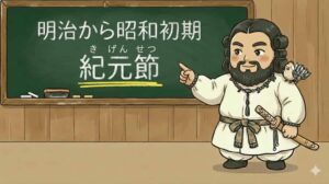 明治時代から昭和初期にかけては、この日は紀元節と呼ばれており、国を挙げて盛大に祝う四大節の一つとして当時の国民に親しまれていました。