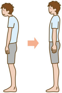背筋を伸ばすだけで肩こりや頭痛の予防につながり、疲れにくい体になります。