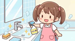 水回りに発生しやすい水垢や石鹸カスといったアルカリ性の汚れに対して、酸性の性質を持つクエン酸は化学反応で中和し強力に分解する力を持っています。