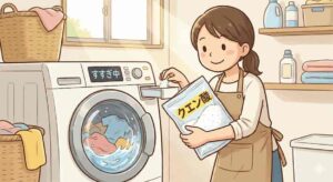 洗濯のすすぎの段階でクエン酸を入れると、洗剤によってアルカリ性に傾いた衣類を中和して繊維をふんわりと柔らかく仕上げることができます。