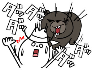 これは陸上選手よりも速く、人間は逃げ切れません。前脚の筋力が非常に発達しており、木登りや急斜面の駆け上がりも得意です。山で出会った場合は走って逃げるのは危険です。