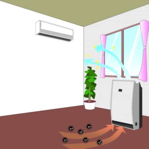 効率的な空気清浄には気流の制御が不可欠です。エアコンの対面に設置すると、エアコンの風と清浄機の気流が連動し、部屋全体に大きな循環が生まれます。