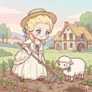 そこでは素朴な綿のドレスを着て羊飼いの真似事をしたり、実際に農作物を育てて収穫を楽しんだりと、心安らぐ時間を過ごしました。