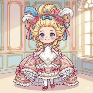 高さが1メートルを超えることもある独特なスタイルは貴族女性の間で流行し、当時の宮廷の華やかなファッションを象徴しました。