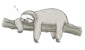 1日に約15〜20時間眠ります。活動を最小限にしてエネルギーを節約するため、睡眠中も木にぶら下がったまま過ごします。