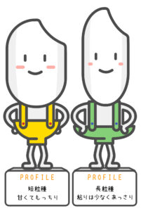代表的なのが「コシヒカリ」や「ゆめぴりか」で、でんぷんの性質が違い冷めても硬くなりにくいです。