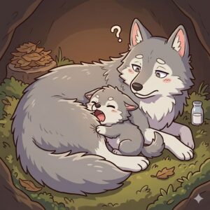 母親から生まれたばかりの子オオカミは体重がわずか500グラムほどで、視力も聴力も備わっていない非常に無防備な状態です。