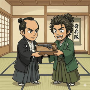 龍馬は理想家のイメージが強いですが、亀山社中を通じて大量の銃や蒸気船を長州藩に仲介するなど、武器商人としての一面も持っていました。