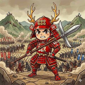 彼の部隊が身にまとっていた鮮やかな赤い甲冑は、かつて父親が仕えていた武田信玄の軍勢の中で最強と恐れられた部隊のシンボルです。
