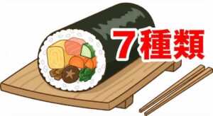 恵方巻には商売繁盛や無病息災を願って、七福神にちなんだ7種類の具材を巻き込むのが基本となっており、福を巻き込むという意味が込められています。