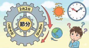 節分は立春の前日と定義されていますが、実際には地球が太陽を回る公転周期には微妙なズレが生じることになるため、立春の日付も固定されずに変動するものです。