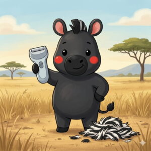 シマウマの毛をすべて綺麗に剃り落としてみると白と黒のストライプ模様ではなく、意外にも真っ黒な地肌が全身に広がっています。