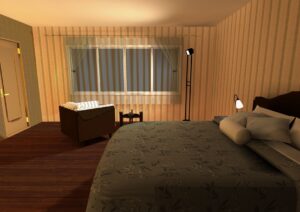 寝室では一つの明るい照明よりも、間接照明やスタンドライトなどを組み合わせるのが効果的です。