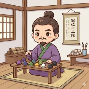 役人の能力や地位を色付きの冠で誰にでもわかりやすく分類したもので、当時の日本において非常に画期的な実力主義の導入でした。