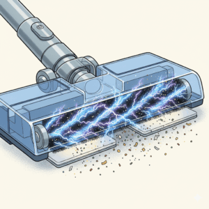 掃除機の吸引だけでなく、ブラシ部分には静電気が発生しています。これが微細なほこりや髪の毛を吸着する役割を果たし、効率的にゴミを取り除いているのです。