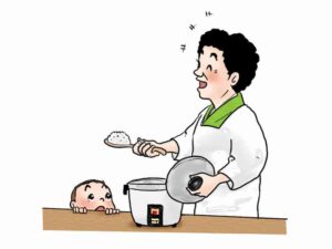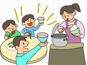 電気炊飯器の登場により、スイッチ一つで誰でも安定したご飯が炊けるようになり、家事の負担が大きく軽減されました。
