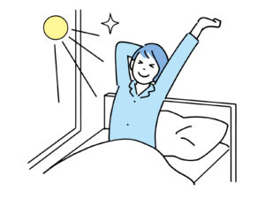 つまり“夜の快眠”は“朝の光”から始まっているのです。起きたらまずカーテンを開けて、1分でも多く朝日を浴びましょう。