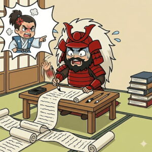 自分は病気で寝込んでいただけだと必死に弁解する内容は、猛将の意外な一面を示しています。