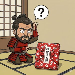 山梨名物の信玄餅ですが、実は本人が考案したという確証はなく、彼が非常食としていた餅が由来との説があるのみです。