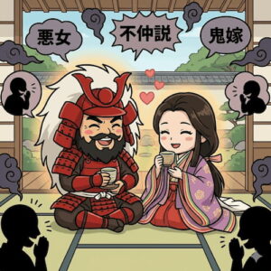 正室の三条の方は、かつて物語の中で嫉妬深い悪女として描かれることが多かったです。