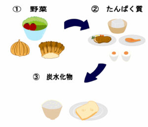糖尿病では血糖値を急上昇させない食事が重要です。野菜から食べる食べ順や、糖質量の調整、適切なタンパク質・脂質の摂取が効果的です。