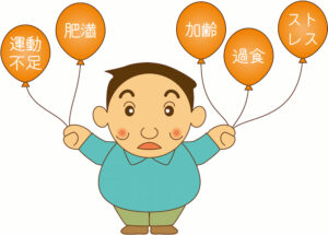 糖尿病の原因は遺伝的な体質だけでなく、食生活の乱れ、運動不足、肥満、ストレスなど複数が重なって起こることが多いです。