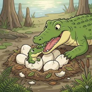 多くの爬虫類は卵を産みっぱなしにしますが、ワニの母親は巣の近くに留まり外敵から大切な卵を保護する深い愛情を持っています。