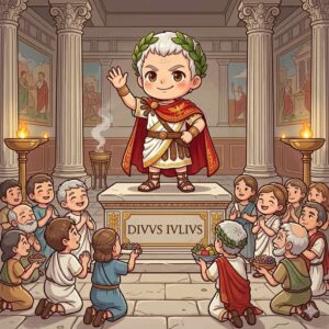 悲劇的な暗殺の後に明るい彗星が現れたことなどから神格化され、国家公認の「神君ユリウス」として神殿で礼拝されるようになりました。