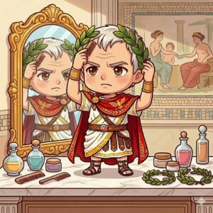 元老院から特権として与えられた月桂冠を喜んで常に被っていたと言われており、完全無欠の偉人が持つ人間らしい一面であると言えるのです。